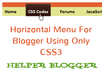 <style type=""text/css">/* Only CSS3 Horizontal Menu For Blogger By http://www.helperblogger.com/ */div.topbar { height: 16px; background: #e16031;}ul.claybricks { font-weight: bold; width: 100%; background: #e3e490; padding: 6px 0 6px 0; margin: 0; text-align: left; font-family: calibri;}ul.claybricks li { display: inline;}ul.claybricks li a { color: black; padding: 6px 8px 4px 8px; margin-right: 20px; text-decoration: none;}ul.claybricks li a:hover, ul.claybricks li a.selected { color: white; background: #5d4137; background: -moz-linear-gradient(top, #5d4137 0%, #41251b 12%, #2c0f05 100%); background: -webkit-gradient(linear, left top, leftbottom, color-stop(0%,#5d4137), color-stop(12%,#41251b), color-stop(100%,#2c0f05)); background: -webkit-linear-gradient(top, #5d4137 0%,#41251b 12%,#2c0f05 100%); background: -o-linear-gradient(top, #5d4137 0%,#41251b 12%,#2c0f05 100%); background: -ms-linear-gradient(top, #5d4137 0%,#41251b 12%,#2c0f05 100%); background: linear-gradient(top, #5d4137 0%,#41251b 12%,#2c0f05 100%); filter: progid:DXImageTransform.Microsoft.gradient( startColorstr='#5d4137', endColorstr='#2c0f05',GradientType=0); -moz-box-shadow: 0 0 5px #595959; -webkit-box-shadow: 0 0 5px #595959; box-shadow: 0 0 5px #595959; padding-top: 17px; padding-bottom: 6px;}/* Only CSS3 Horizontal Menu For Blogger By http://www.helperblogger.com/ */<div class=""topbar"><ul class=""claybricks">
