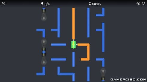 Logical game, where you have to connect all the light bulbs to the power supply.